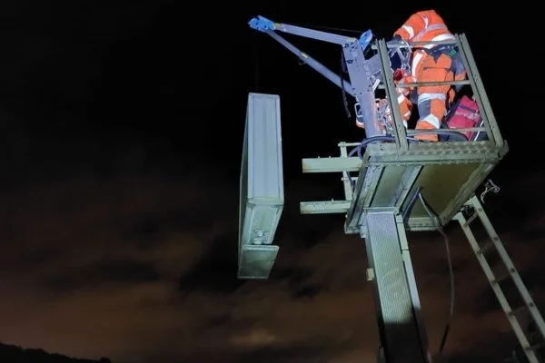As part of the modernization of its network, the SNCF are gradually replacing the speedometer panels (TIV) to integrate more recent models, particularly LEDs. These panels, essential for railway signaling, are often installed at height on metal structures, such as davits or gantries, making their replacement complex and requiring secure lifting equipment that is easy to deploy.